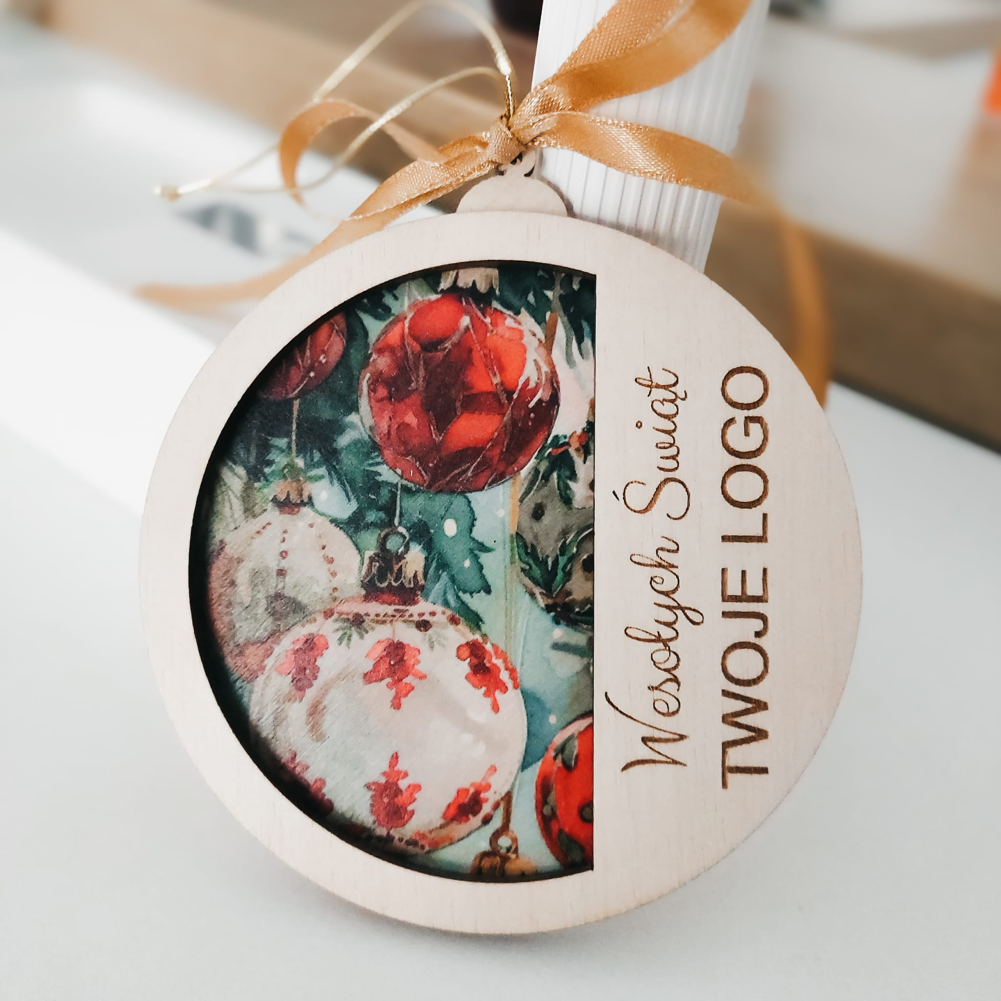 Szukasz wyjątkowego gadżetu świątecznego, który wyróżni Twoją firmę? Oferujemy dwuwarstwową bombkę choinkową z drewnianej sklejki, idealną do personalizacji! Na górnej warstwie możesz umieścić grawerowane logo firmy lub dowolny inny znak graficzny, co sprawia, że będzie doskonałym upominkiem świątecznym dla Twoich klientów i partnerów biznesowych.