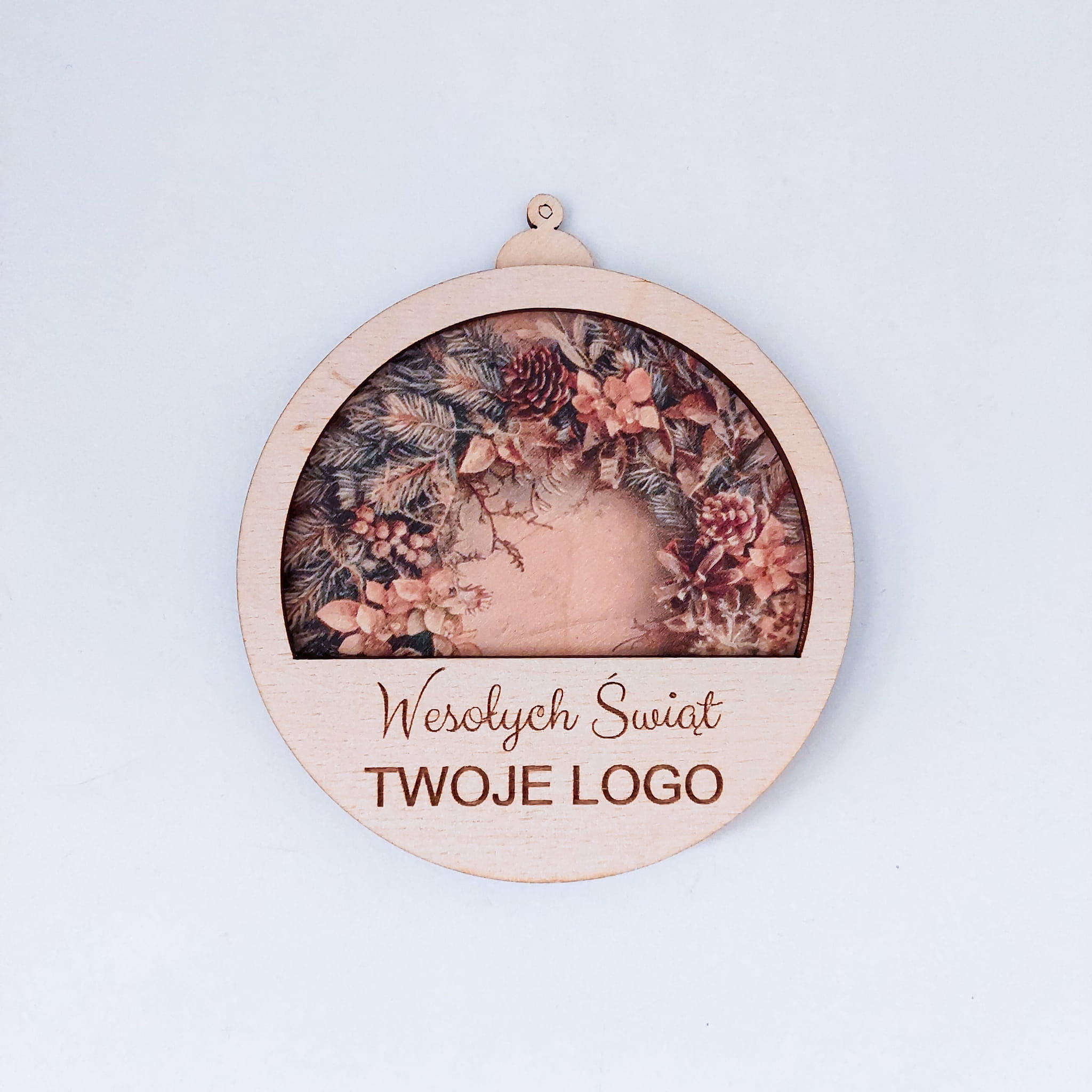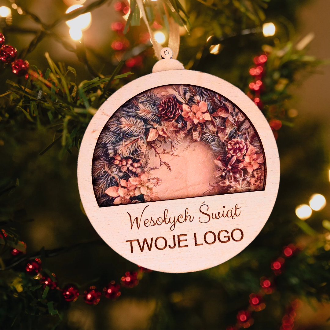 Szukasz wyjątkowego gadżetu świątecznego, który wyróżni Twoją firmę? Oferujemy dwuwarstwową bombkę choinkową z drewnianej sklejki, idealną do personalizacji! Na górnej warstwie możesz umieścić grawerowane logo firmy lub dowolny inny znak graficzny, co sprawia, że będzie doskonałym upominkiem świątecznym dla Twoich klientów i partnerów biznesowych.